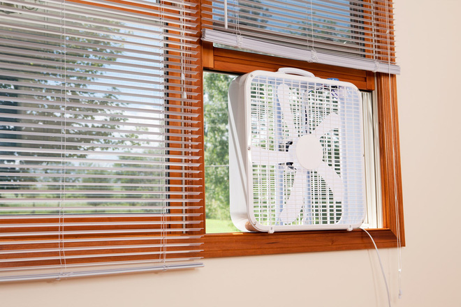 Đặt một chiếc quạt ở cửa sổ để đẩy không khí nóng ra bên ngoài là một cách tốt để giữ cho ngôi nhà của bạn mát mẻ.